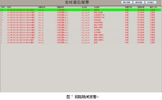主要用于查看歷史報(bào)警信息;幫助用戶進(jìn)行事故查詢與追憶;支持歷史查詢,打印等功能。實(shí)時(shí)報(bào)警信息會(huì)即時(shí)彈出,提醒用戶所進(jìn)行的操作。并對(duì)所有操作具有自動(dòng)事件記錄功能。如圖7所示。