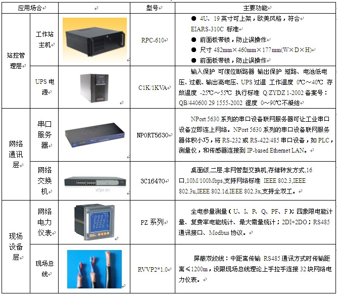 3.3儀表,通訊線纜,交換機及串口服務(wù)器選型
