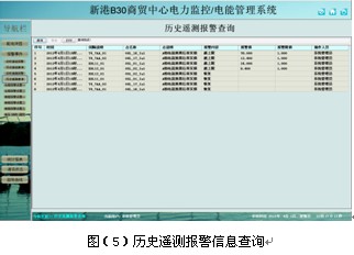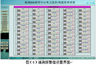 遙信和遙測報警功能,主要完成對低壓各出線回路的開關(guān)運行狀態(tài)和負載進線監(jiān)控,對開關(guān)變位和負載越限彈出報警界面指示具體的報警位置并聲音報警,提醒值班人員及時處理。遙測報警值設置界面可以看到每個監(jiān)控點的實時值和報警設置值,方便值班人員比對進線設置,負載越限值在相應權(quán)限下可自由設置。具備歷史查詢功能。見圖(4)至圖(6)。