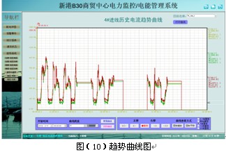負荷趨勢曲線功能主要負責定時采集進線及重要回路電流和功率負荷參量,自動生成運行負荷趨勢曲線的,方便用戶及時了解設備的運行負荷狀況。點擊畫面相應按鈕或菜單項可以完成相應功能的切換;可以查看實時趨勢曲線或歷史趨勢線;對所選曲線可以進行平移、縮放、量程變換等操作,幫助用戶進線趨勢分析和故障追憶,為分析整個系統(tǒng)的運行狀況提供了直觀而方便的軟件支持。