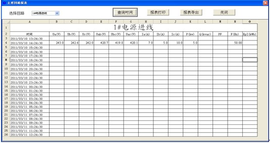 5、 電能管理。可查詢月報(bào)表、日報(bào)表、小時(shí)報(bào)表。具備遠(yuǎn)程抄表功能。同時(shí)可對報(bào)表保存打印等功能。