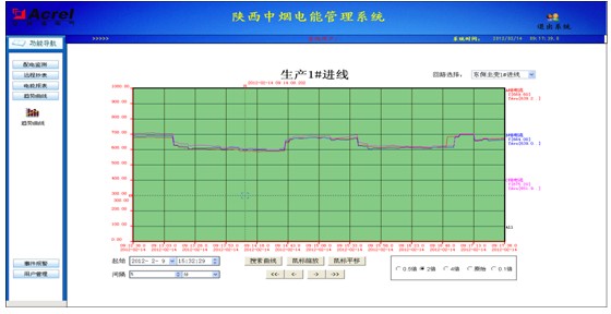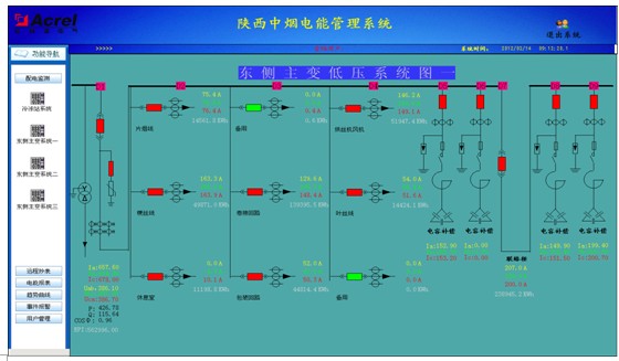 上海安科瑞電氣股份有限公司系統(tǒng)集成部對(duì)陜西中煙工業(yè)有限責(zé)任公司澄城卷煙廠要解決的問題進(jìn)行詳細(xì)分析,弄清楚項(xiàng)目發(fā)起人及項(xiàng)目其他干系人的要求¸待開發(fā)的信息系統(tǒng)要解決客戶和用戶的業(yè)務(wù)問題以及問題的來龍去脈后,經(jīng)雙方溝知電力監(jiān)控系統(tǒng)應(yīng)實(shí)現(xiàn)各配電室各饋線回路電壓、電流、功率、功率因數(shù)及頻率等監(jiān)測信息實(shí)時(shí)刷新,配電室整體一次圖形式直觀動(dòng)態(tài)顯示;完成對(duì)各配電回路的電壓、電流或功率實(shí)時(shí)和歷史趨勢(shì)曲線的繪制,便于分析該回路配電運(yùn)行工況,調(diào)配三相配電平衡和削峰填谷;完成對(duì)各回路的電能集抄功能,并自動(dòng)生成符合客戶管理需求的用電報(bào)表,所有報(bào)表或圖表支持查詢打印功能。