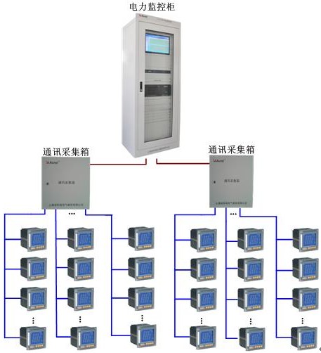 為滿足配電室統(tǒng)一監(jiān)控的要求,配電室現(xiàn)場安裝安科瑞公司網(wǎng)絡(luò)電力儀表通過屏蔽雙絞線手拉手相連至串口服務(wù)器,串口服務(wù)器經(jīng)光電轉(zhuǎn)換器后接入網(wǎng)絡(luò)交換機(jī),進(jìn)而傳輸至后臺(tái)主機(jī)實(shí)現(xiàn)對(duì)現(xiàn)場數(shù)據(jù)的采集,存儲(chǔ),處理,實(shí)時(shí)顯示以及歷史查詢