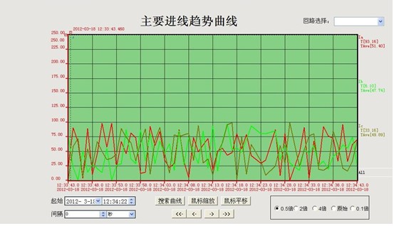 4.2. 趨勢(shì)曲線:實(shí)現(xiàn)了用戶所要求的通過對(duì)各配電回路的電壓、電流或功率繪制趨勢(shì)曲線,分析該回路配電運(yùn)行工況