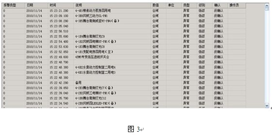 故障報警及事故追憶查詢 在配電系統(tǒng)發(fā)生運行故障時,會及時發(fā)出聲光報警提示用戶及時響應故障回路,同時自動記錄事件發(fā)生的時間地點,以被用戶查詢,追憶故障原因,記錄如圖3所示: