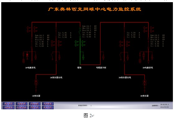 5總結 本文介紹了廣州亞運會網(wǎng)球中心電力監(jiān)控系統(tǒng)的總體結構以及實現(xiàn)功能。在系統(tǒng)投資運營以后,成功經歷了亞運會網(wǎng)球比賽的各階段賽事。如今亞運已經成為了歷史,網(wǎng)球中心也成了廣大網(wǎng)球愛好者的新坐標。網(wǎng)球中心電力監(jiān)控系統(tǒng)也將繼續(xù)它的光榮使命,為廣大網(wǎng)球愛好者提供安全、穩(wěn)定的用電保障。