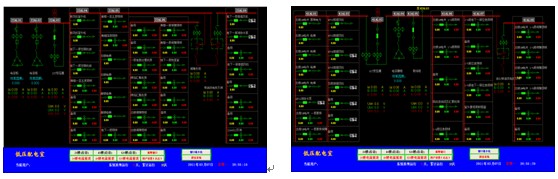 系統(tǒng)提供簡(jiǎn)單、易用、良好的用戶使用界面。采用全中文界面,CAD圖形顯示配電系統(tǒng)電氣一次主接線圖,顯示配電系統(tǒng)設(shè)備狀態(tài)及相應(yīng)實(shí)時(shí)運(yùn)行參數(shù),畫(huà)面定時(shí)輪巡切換;畫(huà)面實(shí)時(shí)動(dòng)態(tài)刷新;模擬量顯示;開(kāi)關(guān)量顯示;連續(xù)記錄顯示等,通過(guò)畫(huà)面顏色的變化(紅色表示合閘狀態(tài)、綠色表示分閘狀態(tài))可以看到各回路的分合閘狀態(tài)。