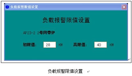 負(fù)載報(bào)警限值設(shè)置窗口可以設(shè)置選中回路負(fù)載的初限報(bào)警值和高限報(bào)警值,起到預(yù)警和報(bào)警的作用。