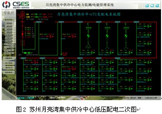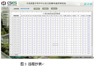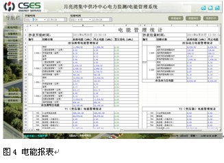 蘇州月亮灣集中供冷中心低壓配電二次圖見圖2,功能有電量遙測(cè)主要監(jiān)測(cè)運(yùn)行設(shè)備的電參量,其中包括:線三相電壓,電流,功率,功率因數(shù),電能,頻率等電參量及配出回路的三相電流;遙信功能實(shí)現(xiàn)顯示現(xiàn)場(chǎng)設(shè)備的運(yùn)行狀態(tài),主要包括:開關(guān)的分、合閘運(yùn)行狀態(tài)和通訊故障報(bào)警;遠(yuǎn)程抄表功能,主要完成對(duì)各主要回路的遠(yuǎn)程集抄功能,可選擇時(shí)間段進(jìn)行查詢見圖3;