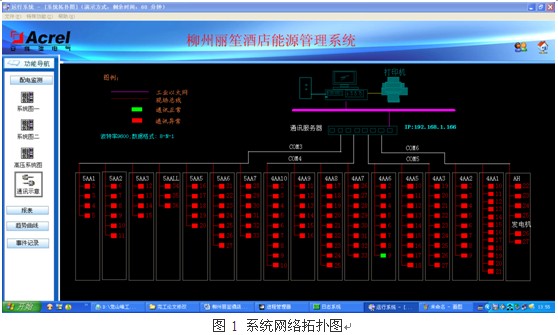 本文以Acrel-3000智能電力監(jiān)控系統(tǒng)的三層網(wǎng)絡拓撲結(jié)構(gòu)為核心,分析了網(wǎng)絡拓撲結(jié)構(gòu)的選型,以及Acrel-3000電力監(jiān)控系統(tǒng)的功能和性能指標。在電力監(jiān)控系統(tǒng)中,配置網(wǎng)絡電力儀表具有實施簡明、投資少等顯著優(yōu)點,可以方便和實時地監(jiān)控配電系統(tǒng)的運行狀態(tài),對現(xiàn)場的用電設備進行統(tǒng)一管理,免去工作人員到現(xiàn)場記錄的繁瑣工作,系統(tǒng)對各種用電設備的歷史運行數(shù)據(jù)和狀態(tài)進行管理分析,便于維護人員明確設備狀況,制定詳細的設備維護計劃,減少工作人員,提高效率。同時,根據(jù)建立的電能計量體系,可以了解、分析建筑總體能耗,提出降耗計劃,采取節(jié)能降耗措施,逐步提高用電效率。