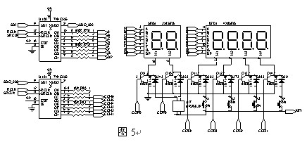 顯示部分電路使用串入并出移位寄存器74HC595兩顆級聯(lián)使用,其中U100的輸出作為數(shù)碼管的段碼,U101輸出作為數(shù)碼管的位選信號,使用動態(tài)顯示方式,逐個點亮數(shù)碼管,數(shù)碼管的位選信號還作為按鍵的檢測功能,CPU在“KEY”線輸出電平,當某一位數(shù)碼管導通,如果此時接在此數(shù)碼管選通線上的按鍵按下時,“KEY”線會被拉低,CPU就會檢測到一次按鍵事件,再經(jīng)過按鍵消抖處理來防止多次觸發(fā)或誤判。(圖5)