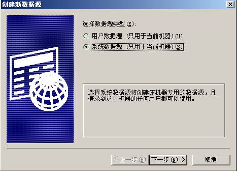 先選中“機(jī)器數(shù)據(jù)源”選項(xiàng)卡,然后單擊 按鈕,出現(xiàn)[圖1-3]所示的“創(chuàng)建新數(shù)據(jù)源”窗口,在“選擇數(shù)據(jù)源類型”選項(xiàng)中選擇“系統(tǒng)數(shù)據(jù)源(只用于當(dāng)前機(jī)器)(S)”來創(chuàng)建一個(gè)新數(shù)據(jù)源。