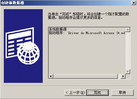 單擊[圖1-3] 按鈕,彈出[圖1-4]所示“創(chuàng)建新數(shù)據(jù)源”窗口,在提供的數(shù)據(jù)源驅(qū)動(dòng)程序列表中選擇驅(qū)動(dòng)“Microsoft Access Driver (*.mdb)”,然后單擊 按鈕,彈出[圖4-45]所示的窗口。