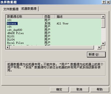 單擊 按鈕后,名為“Access”的新數(shù)據(jù)源就建好了,如[圖1-8],使用該數(shù)據(jù)源名可以連接本機(jī)任何Access的數(shù)據(jù)庫了。