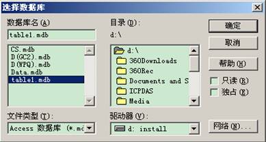 在這里選擇我們要連接的數(shù)據(jù)庫“D:\”根目錄下的“table1.mdb”數(shù)據(jù)庫,點(diǎn)擊 按鈕回到[圖1-15]窗口后,最后單擊 按鈕(或直接返回)在光標(biāo)所在位置返回完整的數(shù)據(jù)源。返回結(jié)果如下: