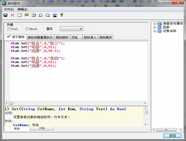 ObDataTable [對象名]; 腳本內(nèi)容如下圖:
