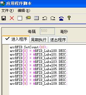(2)數(shù)組初始化:在應(yīng)用腳本的“進入程序”中對該數(shù)組初始化并指向需要讀取的條碼