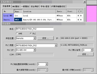 使用EB8000,并在[系統(tǒng)參數(shù)設(shè)定]里的[設(shè)備清單],增加一臺PLC的定義,并正確設(shè)定通訊參數(shù)。
