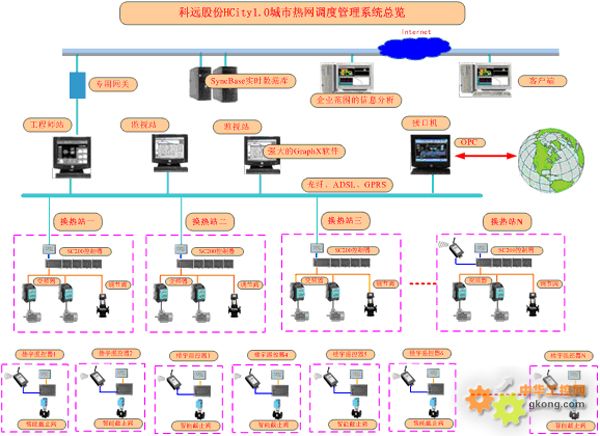 HCity1.0是科遠(yuǎn)股份股份新近推出的針對(duì)城市熱網(wǎng)調(diào)度管理的完整解決方案,系統(tǒng)承擔(dān)著城市供熱的系統(tǒng)運(yùn)行狀態(tài)監(jiān)測(cè)、運(yùn)行參數(shù)設(shè)定、負(fù)荷預(yù)測(cè)、調(diào)度指揮、統(tǒng)計(jì)分析等多重功能,是整個(gè)熱力系統(tǒng)的監(jiān)控管理中心,系統(tǒng)主要包括:中心熱網(wǎng)調(diào)度管控中心、區(qū)域換熱站、用戶側(cè)計(jì)量溫控系統(tǒng)等,基于科遠(yuǎn)專業(yè)的SC200小型PLC、HVIEW觸摸屏、GraphX組態(tài)軟件、SyncBase實(shí)時(shí)數(shù)據(jù)庫(kù)、智能調(diào)節(jié)閥等核心產(chǎn)品,具有強(qiáng)大的管理和監(jiān)控功能,支持從工作站到掌上電腦等本地、遠(yuǎn)程和無(wú)線終端設(shè)備連接,具有高度穩(wěn)定、可靠性同時(shí)具有極大的系統(tǒng)伸縮性,支持海量數(shù)據(jù)存貯及數(shù)據(jù)分析和發(fā)掘,為城市供熱管理提供了便捷、可靠、有效的管理手段。