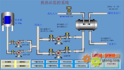 區(qū)域換熱站是熱網(wǎng)系統(tǒng)的重要組成部分,主要完成以下功能:現(xiàn)場(chǎng)溫度、壓力、流量、電流、液位信號(hào)、閥門開(kāi)度等的采集;現(xiàn)場(chǎng)各調(diào)節(jié)閥、電機(jī)、變頻器的控制及運(yùn)行監(jiān)視。在換熱站中,可通過(guò)觸摸屏簡(jiǎn)單方便的完成人機(jī)交互,監(jiān)控各種設(shè)備穩(wěn)定運(yùn)行。