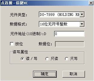 數(shù)據(jù)類型:從元件中讀取的數(shù)據(jù)的類型,包括:16位無符號整數(shù)、16位有符號整數(shù)、32位有符號整數(shù)、32位有符號整、32位浮點數(shù)、字符型、8位無符號整數(shù)、8位有符號整數(shù)。
