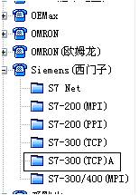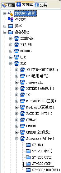 1.確定驅(qū)動(dòng)名稱,在開發(fā)系統(tǒng)導(dǎo)航樹上:數(shù)據(jù)庫/plc/Siemens(西門子)/S7-300(Tcp)如下圖: