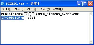 5.雙擊進(jìn)入驅(qū)動(dòng)文件夾如:C:\Program Files\RealInfo\IO Servers\復(fù)件 PLC_Siemens_S7Net進(jìn)入IODESC.txt文件把S7-300(TCP)改為S7-300(TCP)A保存。如圖: