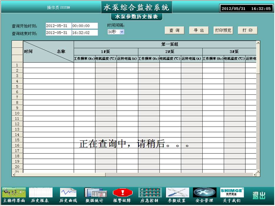 可以按照時間段和時間間隔,查詢每個電泵的電流、溫度等的歷史數(shù)據(jù)和實時數(shù)據(jù)。報表數(shù)據(jù)可以進行導(dǎo)入、導(dǎo)出,打印、打印預(yù)覽等操作
