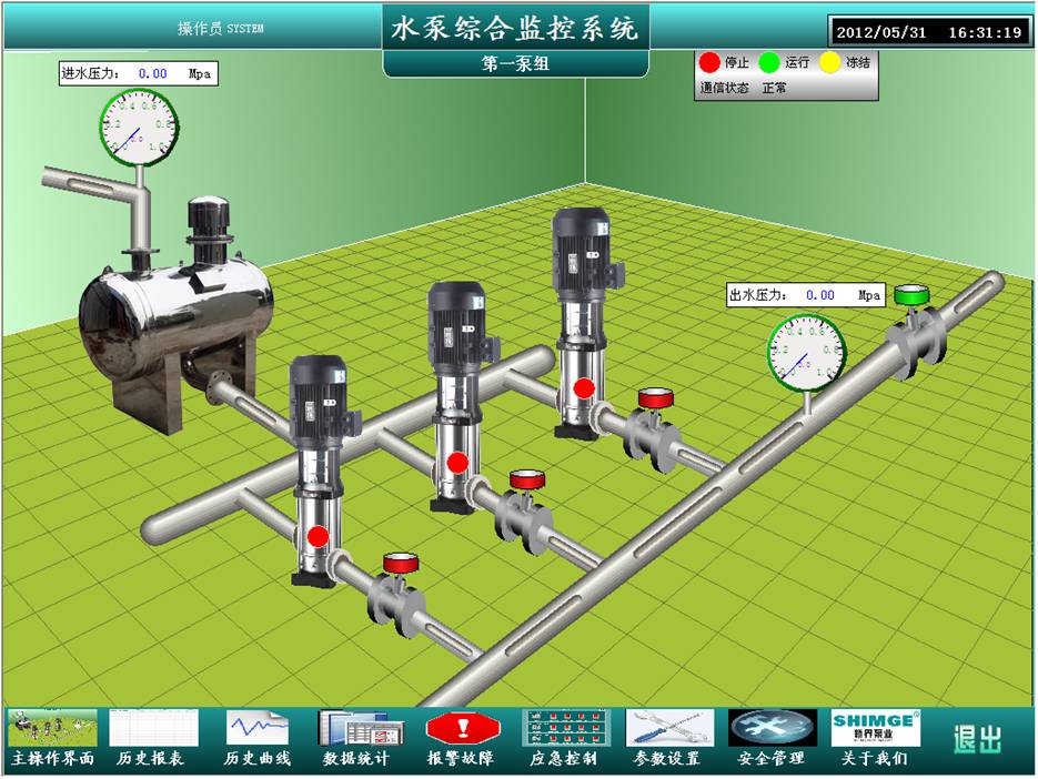 本系統(tǒng)針對水泵系統(tǒng)而設(shè)計,系統(tǒng)架構(gòu)先進可靠,擴展性好,可以實時采集現(xiàn)場數(shù)據(jù),高效保存歷史記錄,具備完善的報表系統(tǒng),同時可以便捷實現(xiàn)聯(lián)網(wǎng)監(jiān)控。本系統(tǒng)是水泵運行系統(tǒng)的有效補充和提升,可以提升公司產(chǎn)品的競爭力,而且便于發(fā)現(xiàn)和管理水泵使用過程中的違規(guī)操作,減少公司產(chǎn)品后續(xù)維護成本。本系統(tǒng)選擇紫金橋軟件作為系統(tǒng)架構(gòu)平臺。