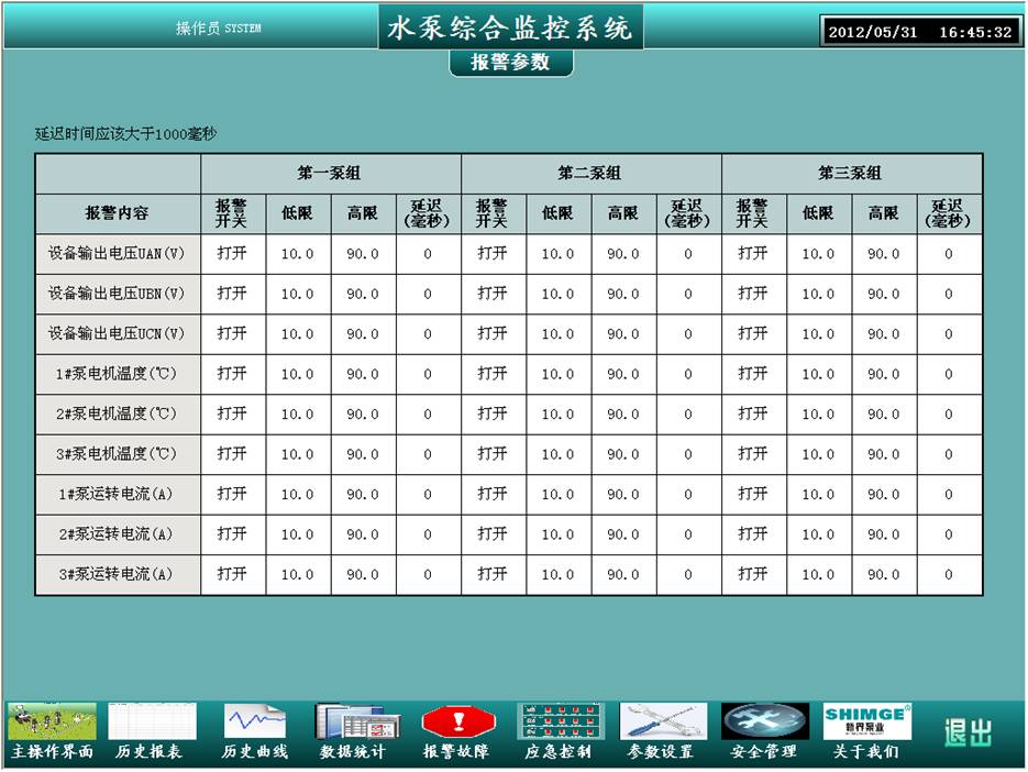 可以通過監(jiān)控軟件設(shè)定水泵的控制參數(shù)和報警參數(shù)。