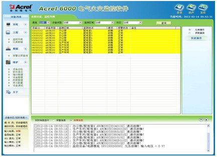 本套上位機(jī)軟件 Acrel-6000 電氣火災(zāi)系統(tǒng)。主要有以下功能特點(diǎn):友好的人機(jī)界面,可實(shí)時(shí)和定時(shí)采集現(xiàn)場設(shè)備的剩余電流數(shù)據(jù)和溫度、并有報(bào)警提示聲光報(bào)警等功能?蛻艨筛鶕(jù)實(shí)際需要對(duì)報(bào)警溫度值、漏電流值進(jìn)行設(shè)置,報(bào)警故障解除時(shí),可遠(yuǎn)方進(jìn)行復(fù)位。系統(tǒng)可對(duì)報(bào)警事件、日期、報(bào)警值、越線值進(jìn)行記錄,并生成報(bào)表。
