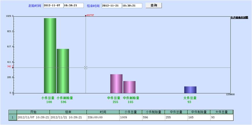 產(chǎn)品良品率對比:顯示某一時(shí)間范圍內(nèi),單條生產(chǎn)線各個生產(chǎn)工段完成賦碼產(chǎn)品的數(shù)量及剔除數(shù)量的對比。