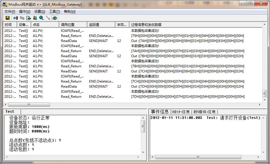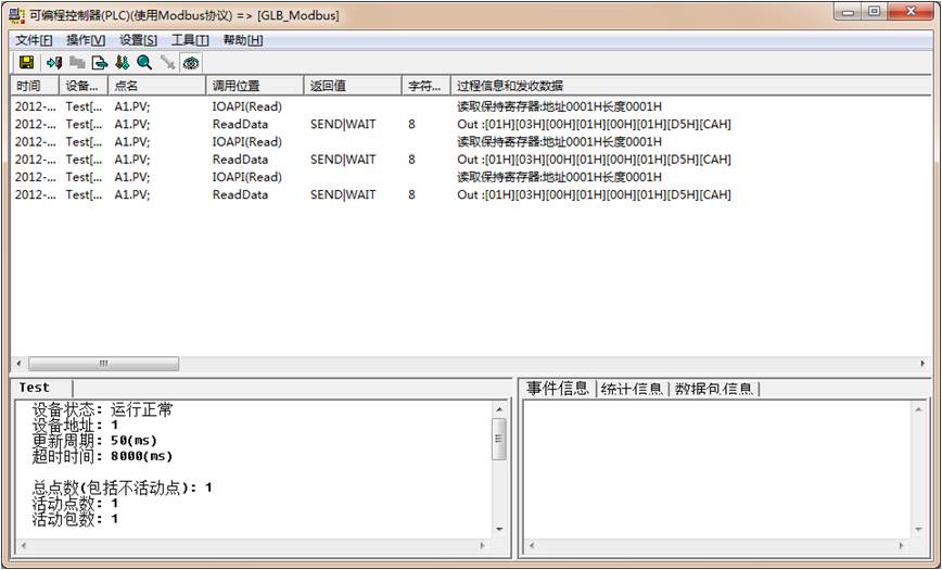 現(xiàn)在可以看到,驅(qū)動調(diào)度程序顯示通訊信息;如果沒有顯示,重啟工程或點擊菜單,操作->重置所有設備。