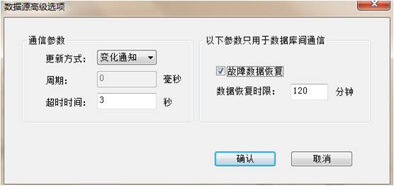 這種方案制作過(guò)程相對(duì)于前兩種要復(fù)雜一些,首先要在服務(wù)器端建立一個(gè)數(shù)據(jù)源指向客戶(hù)端,并在服務(wù)器端建立相應(yīng)的點(diǎn)關(guān)聯(lián)到客戶(hù)端的點(diǎn)上。其次,在服務(wù)器端數(shù)據(jù)庫(kù)全局腳本中編寫(xiě)一段存儲(chǔ)這些點(diǎn)PV值的歷史數(shù)據(jù)的腳本,通過(guò)一個(gè)標(biāo)志位觸發(fā)存儲(chǔ)動(dòng)作?蛻(hù)端在保存歷史數(shù)據(jù)時(shí)要把相應(yīng)點(diǎn)的PV值也做修改,這樣服務(wù)器上做了相應(yīng)關(guān)聯(lián)的點(diǎn)的PV值也會(huì)跟著做改變。在通過(guò)客戶(hù)端觸發(fā)服務(wù)器端的保存標(biāo)志位,服務(wù)器端就會(huì)自行的將這部分?jǐn)?shù)據(jù)存儲(chǔ)下來(lái),在運(yùn)行的狀態(tài)下通過(guò)報(bào)表調(diào)用GetHisDataEx()把歷史數(shù)據(jù)調(diào)取出來(lái)即可。還可以在數(shù)據(jù)源高級(jí)選項(xiàng)中把數(shù)據(jù)故障恢復(fù)勾選上,如下圖所示。即使因通訊中斷,客戶(hù)端無(wú)法觸發(fā)服務(wù)器端的保存標(biāo)志而導(dǎo)致兩端數(shù)據(jù)不同步,在通訊恢復(fù)時(shí),客戶(hù)端也會(huì)自動(dòng)的把這部分?jǐn)?shù)據(jù)長(zhǎng)傳到服務(wù)器中,這樣就更加全面的保證了兩端數(shù)據(jù)的同步性。