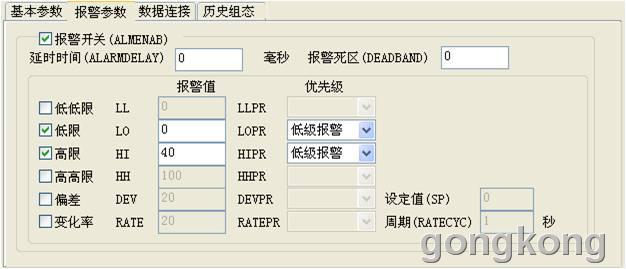 紫金橋軟件的報(bào)警功能可以通過設(shè)置參數(shù)的方式來改變,除了是否報(bào)警外,報(bào)警限制、報(bào)警級別等其他功能,同樣可以通過設(shè)置參數(shù)來動(dòng)態(tài)改變。常用的報(bào)警參數(shù)如下所示: