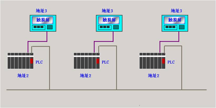 未進(jìn)行設(shè)備組網(wǎng)之前,各個(gè)設(shè)備都是獨(dú)立個(gè)體,一臺(tái)PLC和一個(gè)觸摸屏是一個(gè)基本單元。對(duì)于一些進(jìn)口設(shè)備來(lái)說(shuō),PLC的設(shè)備地址和觸摸屏的設(shè)備地址都是出廠時(shí)已經(jīng)設(shè)置好的。