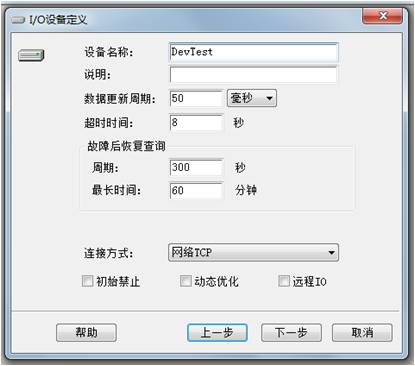 再建設(shè)備時(shí),用專(zhuān)門(mén)為此開(kāi)發(fā)的驅(qū)動(dòng),設(shè)備定義對(duì)話框處將不在出現(xiàn)設(shè)備地址的文本框,而連接方式也變成了網(wǎng)絡(luò)TCP。設(shè)備定義處的IP地址,填寫(xiě)連接各設(shè)備的網(wǎng)關(guān)IP地址,端口號(hào)要設(shè)置成和配置軟件中設(shè)置的一致。至此完成了設(shè)備的組態(tài)。
