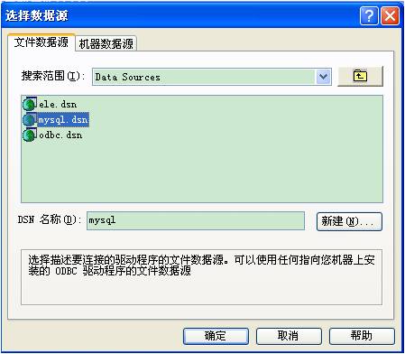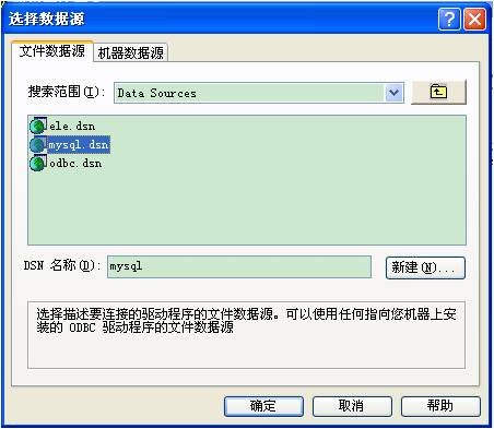 2 選擇之前建的mysql.dsn后,選擇“確定”