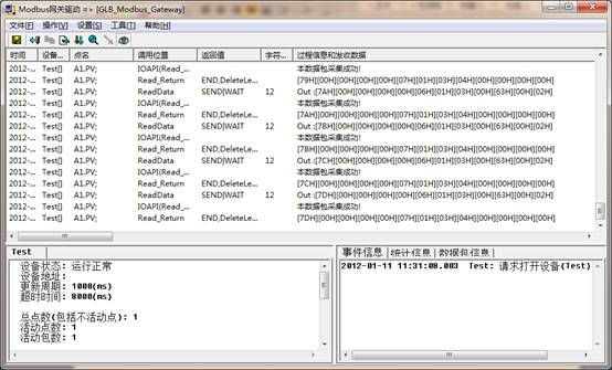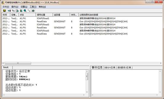 現(xiàn)在可以看到,驅(qū)動調(diào)度程序顯示通訊信息;如果沒有顯示,重啟工程或點(diǎn)擊菜單,操作->重置所有設(shè)備。驅(qū)動調(diào)度程序顯示通訊信息,如下圖所示: