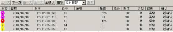 注意數(shù)據(jù)源中選擇的遠程數(shù)據(jù)源Remote,報警范圍中選擇的是區(qū)域0。這樣該報警顯示的將是遠程數(shù)據(jù)源Remote的區(qū)域0的報警。運行結(jié)果如下: