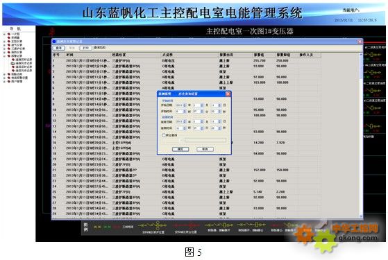 5.4 系統(tǒng)遙信狀態(tài)報警:根據(jù)本系統(tǒng)的設計意圖,如果重要回路或者照明回路三相中某一相電流負荷超過額定值的90%,系統(tǒng)必須立刻發(fā)出聲光報警并彈出指示框指明報警源,提醒管理人員注意負載的三相平衡和負載率,同時自動記錄事件發(fā)生的時間和回路名稱,以便用戶查詢,追憶故障原因,如圖5: