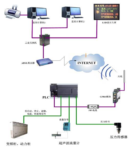 本方案主要是為自來水廠建立一套全廠范圍內(nèi)的分布式的變頻恒壓遠(yuǎn)程監(jiān)控方案。