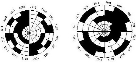 圖5四位二進(jìn)制的碼盤 圖6四位二進(jìn)制循環(huán)碼盤