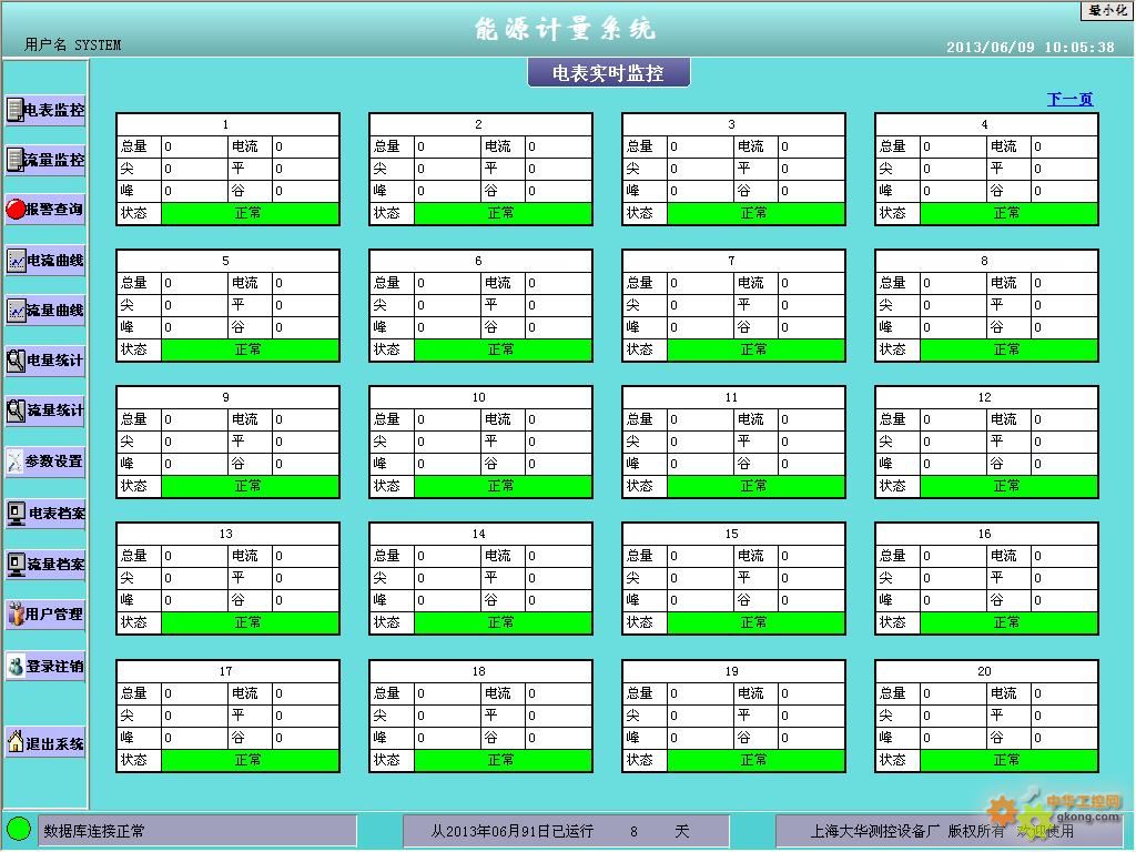 2 系統(tǒng)可以存儲電表的電流,功率,尖、峰、平、谷、總量電度等,流量計的瞬時流量、累計流量等數(shù)據(jù).