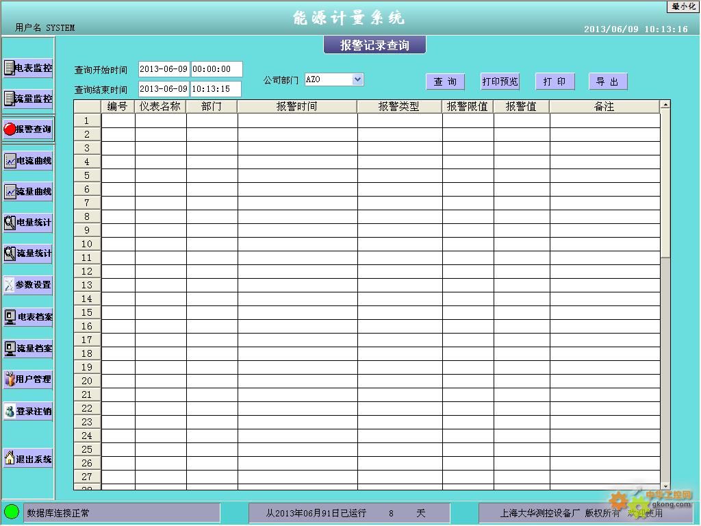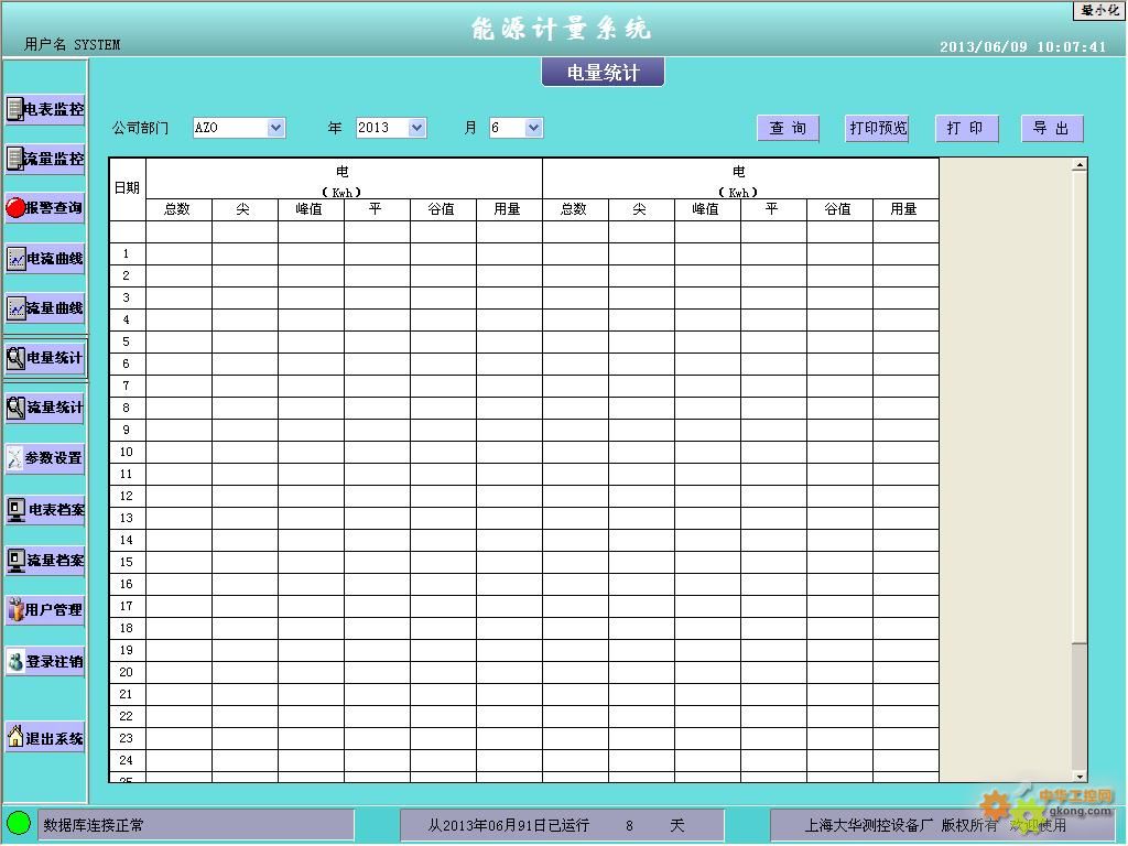 3 系統(tǒng)可以查詢電表的尖、峰、平、谷、總量電度,流量計的累計流量等的歷史報表。并且可以打印導(dǎo)出等操作.