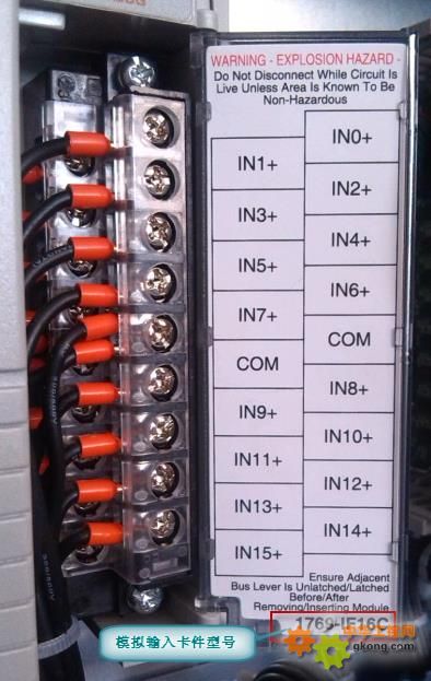 模擬輸入卡件型號: 1769-IF16C。查看方法,打開接線面板,如下圖: