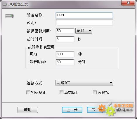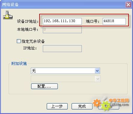 輸入與計算機(jī)連接的PLC以太網(wǎng)口IP地址和端口號,點擊“完成”按鈕完成設(shè)備的定義。