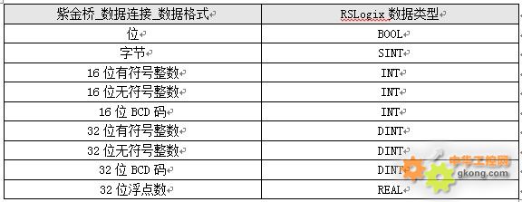 5、數(shù)據(jù)連接中數(shù)據(jù)格式與RSLogix中的類型對應(yīng)表