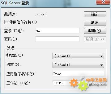 正常情況下,在對話框中輸入ID和密碼就可以,但如果需要定制數(shù)據(jù)庫等其他信息,需要點擊  按鈕,如下圖所示: