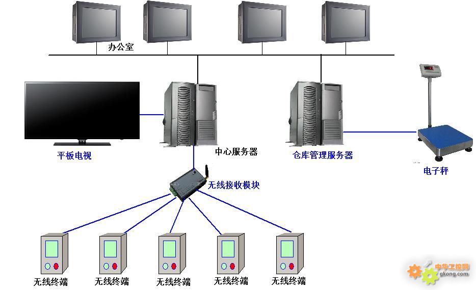 某公司有若干條生產(chǎn)線,需要采集倉庫原料數(shù)據(jù)以及每條生產(chǎn)線的各工位狀態(tài)、產(chǎn)量等相關(guān)數(shù)據(jù)。先期對一條生產(chǎn)線實(shí)施生產(chǎn)監(jiān)控,后續(xù)再擴(kuò)展為各生產(chǎn)線綜合聯(lián)網(wǎng)管理系統(tǒng)。生產(chǎn)線采用無線采集模塊采集數(shù)據(jù),多班輪崗工作。